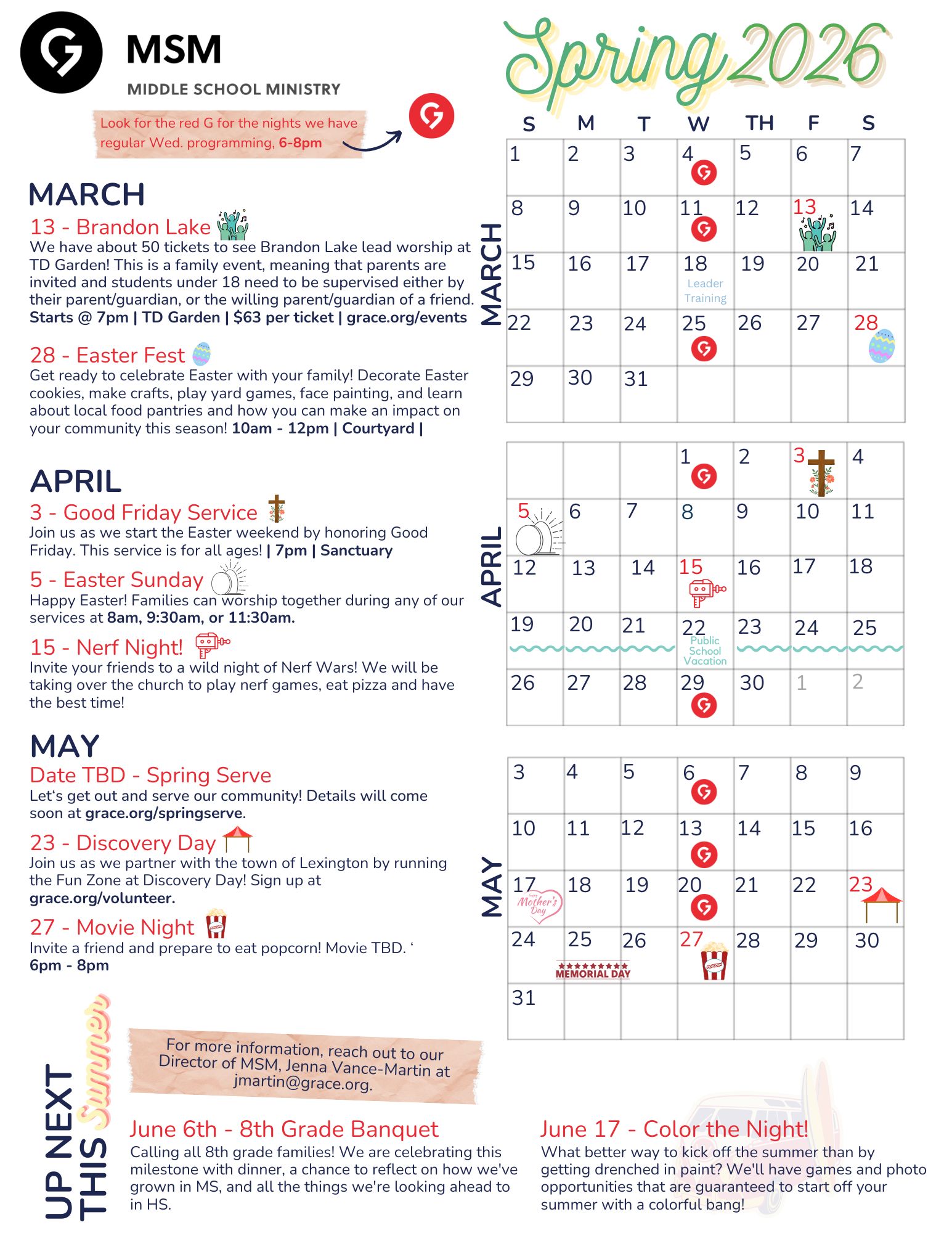 We’re excited you’re here! We create environments and opportunities for middle and high school students to ask questions, be curious, explore Jesus and their faith and build meaningful relationships with one other and a group of caring adults. Our church family would be nothing without our students and we feel blessed and honored to partner with parents, families and these students in what God is doing in and through their lives.